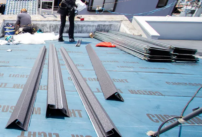 台風などの自然災害で浮き・剥がれ・破損を起こしやすい棟板金の修理・交換を行います。